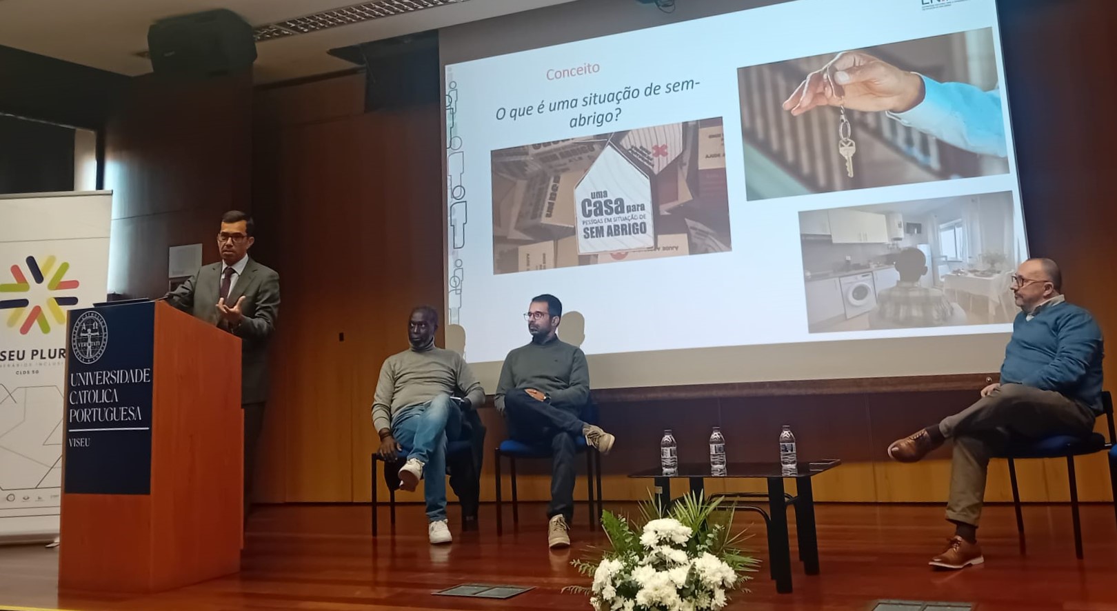 Organizado pelo CLDS5G Viseu Plural, projeto coordenado pelas Obras Sociais de Viseu, em parceria com o Município de Viseu e a Universidade Católica Portuguesa – Centro regional de Viseu, o evento serviu para clarificar o conceito de pessoa em situação de sem-abrigo e partilhar boas práticas de intervenção de vários territórios do país, reforçando a importância de uma abordagem local articulada.